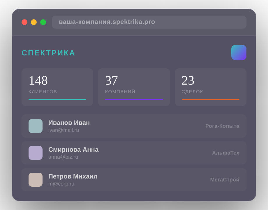Spektrika CRM — система для управления клиентами и компаниями.
